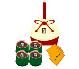ぎおん徳屋の本わらび餅。国産の最上級本わらび粉のみを使用しています。梱包には巾着を使用しています。